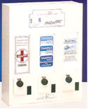 FIRST CHOICE CONDOM MACHINES – -Dispense single or multi packet condoms. 16 gauge cold rolled steel cabinet with powder expoxy finish. Heavy duty locking system. All metal coin mechanism adaptable to most foreign coins. Machine can vend for $.50, $.75, or $1.00. Extra large coin box. Removable and interchangeable hoppers for easy load and mounting.Specify coin vend choice when ordering. Machine designed to be wall mounted. Available in 1, 2, and 3 column machines.