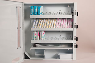 Offers stable, mobile support for both the Series II-6 and II-8 medicine dispensing machines.
